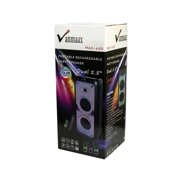 پارتی اسپیکر مدل max 650 به همراه بلندگوهای قوی و رقص نور دار مناسب برای مهمانی و جشن ها میباشد.