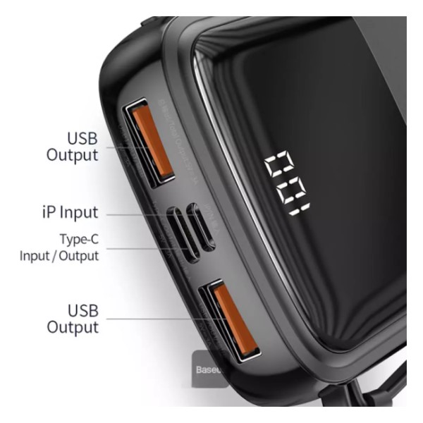 این پاور بانک جیبی دارای یک کابل تایپ C در خود است که تعداد درگاه های شارژ را برای شما افزایش میدهد