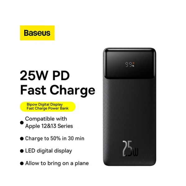 با داشتن پاوربانک باسئوس مدل PPBD020301ظرفیت ۲۰۰۰۰ میلی آمپر ساعت، کاربران قادر به شارژ دستگاههای خود در هر زمان و هر مکانی خواهند بود. پاوربانک بیسوس مدل PPBD020301 ظرفیت 20000 میلی آمپر ساعت و توان 25 وات، به شما توانایی شارژ گوشیهای هوشمند، تبلتها، دوربینها و سایر دستگاههای الکترونیکی را در طول روز میدهد. همچنین، با قدرت خروجی ۲.۴ آمپر، شارژ دستگاههایتان با سرعت بیشتری انجام میشود.