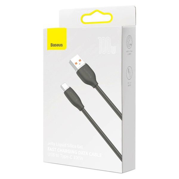 کابل شارژ تایپ سی JELLY LIQUID SILICA GEL بیسوس یک شارژر با جریان 5 آمپر و توان 100 W و همچنین سرعت انتقال داده 480 مگابیت بر ثانیه است