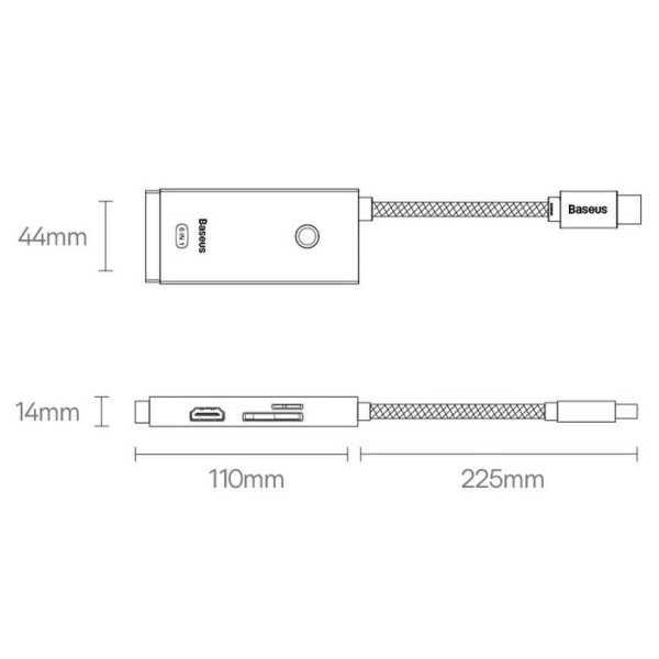 هاب تایپ سی 6 پورت بیسوس مدل WKQX050101 یک هاب برای انتقال داده به درگاه های تایپ سی میباشد