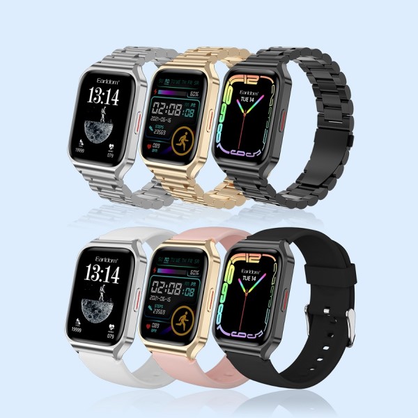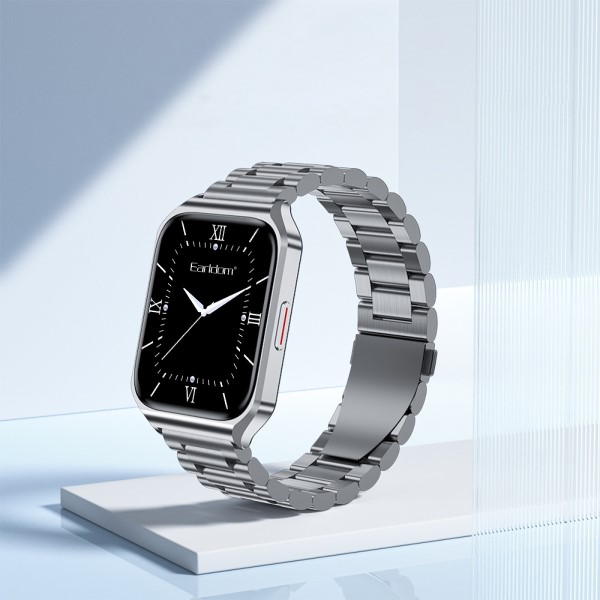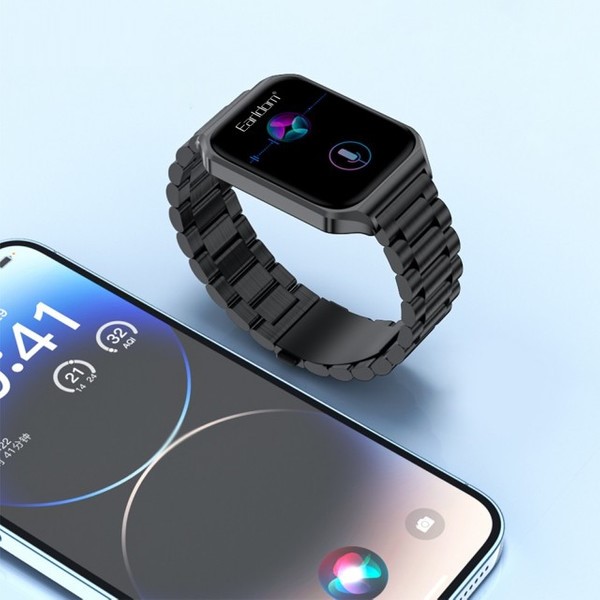 سایز صفحه نمایش 1.85 اینچ با پنل IPS لمسی و رنگی، طراحی شده در فرم مستطیلی، جنس بند از نوع استیل ضد زنگ