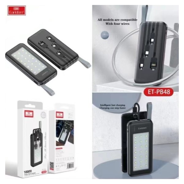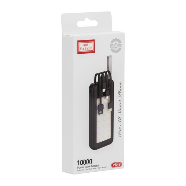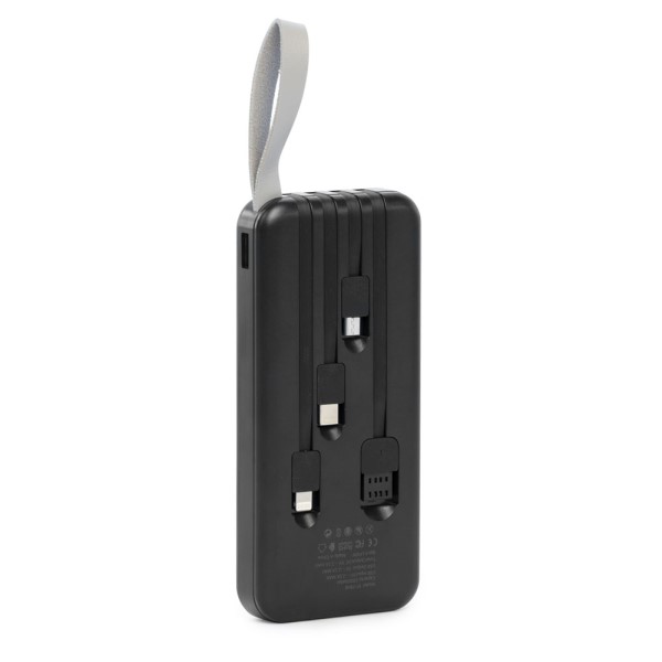این پاور بانک دارای چهار کابل شارژ متصل به خود است. این کابل شارژ ها کابل های Type C - Micro USB-Lightning-USB هستند