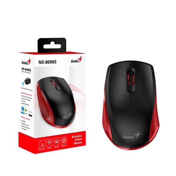 نسل جدیدی از ماوس ها وجود دارد که به آن ها ماوس های سایلنت گفته می شود. ماوس سایلنت همان طور که از اسم آن هم مشخص است ماوسی است که کلیک دکمه های آن صدای بسیار کمی را ایجاد می کند.این ماوس ها مانند دیگر انواع ماوس ها کار می کنند و مکانیزم کلیک آن ها، کاربری آن ها را از ماوس های دیگر متمایز نمی کند. البته به دلیل تغییرات ایجاد شده در سیستم کلیک این دسته از ماوس ها کلیک آن ها نرم تر است و مقدار جابه جایی دکمه های آن ها هم طبیعتا بسیار کمتر از ماوس های دیگر است و به همین دلیل برای گیمینگ مناسب نیستند، اما برای استفاده در محیط های شلوغ اداری که تعداد زیادی از افراد در آن ها مشغول به کار هستند، حذف این صدا های اضافی می تواند به بسیاری از افراد در حفظ تمرکز خود در حین کار کمک کند. موس بی سیم جنیوس مدل Genius NX-8006S Wireless Mouse یکی از ماوس های با کیفیت و سایلنت شرکت جنیوس است. ماوس جنیوس Genius NX-8006S دارای سه کلید برای اعمال دستورات کاربران در انجام کارهای کامپیوتری است. ویژگی های موس بی سیم جنیوس مدل Genius NX-8006S Wireless Mouse ویژگی های ظاهری، جنس و ابعاد: موس بی سیم جنیوس مدل Genius NX-8006S Wireless Mouse دارای ابعاد ابعاد 10 × 5.8 × 3.9 سانتی متر و وزنی معادل 58 گرم دارد. برند جنیوس این مدل ماوس را در سه رنگ سفید، قرمز و مشکی تولید کرده است. این ماوس با طراحی آرگونومی خود باعث می شود که در هنگام کار با این ماوس احساس خستگی نکنید. علاوه بر این، این ماوس به گونه ایی طراحی شده است که قابلیت استفاده با هر دو دست را دارد.