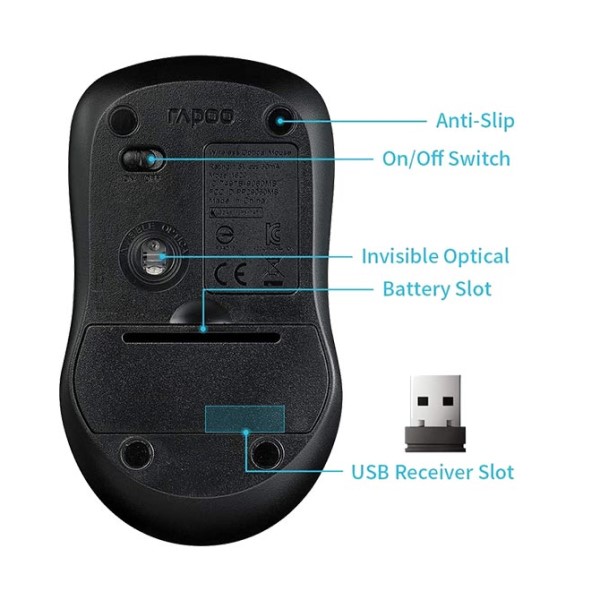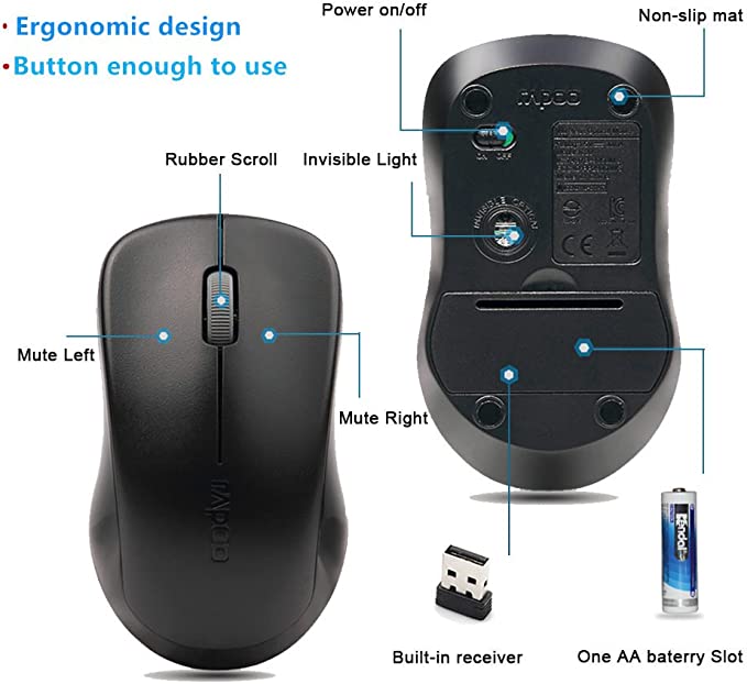 اتصال بی سیم 2.4G قابل اعتماد. فناوری انتقال بی سیم RAPOO 2.4G اتصال بی سیم برد کاری 10 متری را بدون هیچ گونه تداخلی برای شما به ارمغان می آورد و شما را قادر می سازد از آزادی و راحتی بی سیم لذت ببرید.