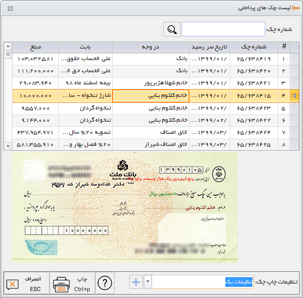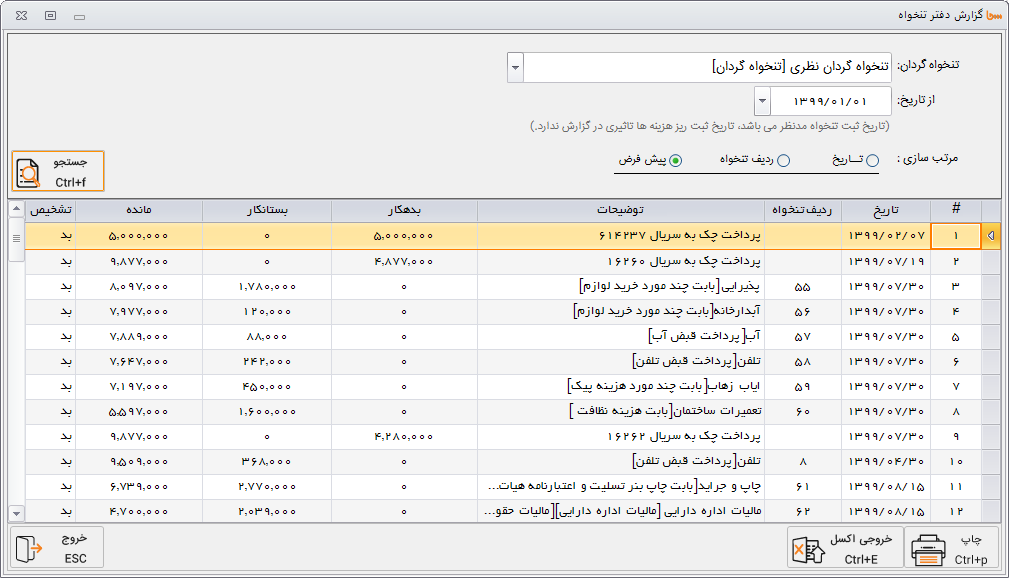 2- امکان مشاهده ی دفتر تنخواه به تفکیک تنخواه گردان