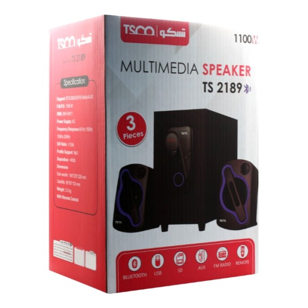 یکی از کارهایی که باعث آرامش روح و روان می شود و انجام آن لحظات خوبی را برای ما رقم می زند، گوش دادن به موسیقی است، و همیشه اینکه چگونه موسیقی گوش دهیم و با چه ابزاری یکی از مسئله های مهم بوده، جدا از این ها دوست داریم برای گوش های خود ارزش قائل شویم و موسیقی یا صوت مورد نظر را با کیفیت مناسبی گوش دهیم، اسپیکر ۳ تکه دسکتاپ تسکو مدل TS2189 دارای پیکر بندی ۲٫۱ کاناله یعنی ۱ عدد ساب ووفر قدرتمند با آمپلی فایر داخلی، و ۲ عدد بلندگوی زیبا و شیک می باشد، و به صورت بی سیم و با سیم، یعنی از طریق بلوتوث نسخه ۴٫۲ با برد اتصال ۸ متر، و از طریق رابط جک ۳٫۵ میلی متر صدا، یا همان کابل AUX، به گوشی، رایانه و دستگاه دیجیتالی مقابل متصل می شود.