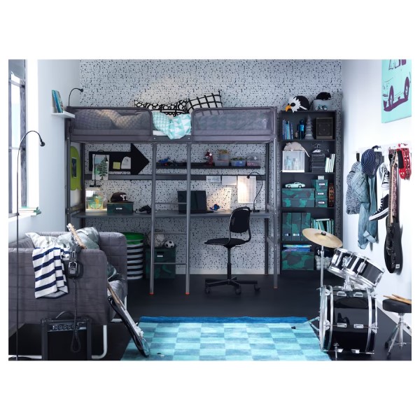 تخت خواب Tuffing به دلیل طراحی که دارد فضا آزادی زیر تخت در اختیار شما میگذارد.شما میتوانید از این فضا زیر تخت برای میز درس یا میز کامپیوتر و حتی کمد لباس استفاده کنید.