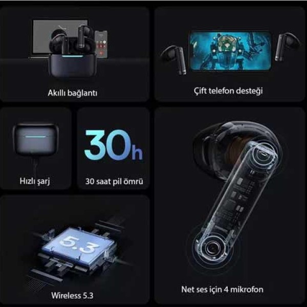این هدفون از طریق درگاه شارژ TYPE C در حدود ۱ ساعت و ۳۰ دقیقه به شارژ کامل میرسد و هر گوشی تا 5 ساعت شارژ دهی در حالت پخش دارد
