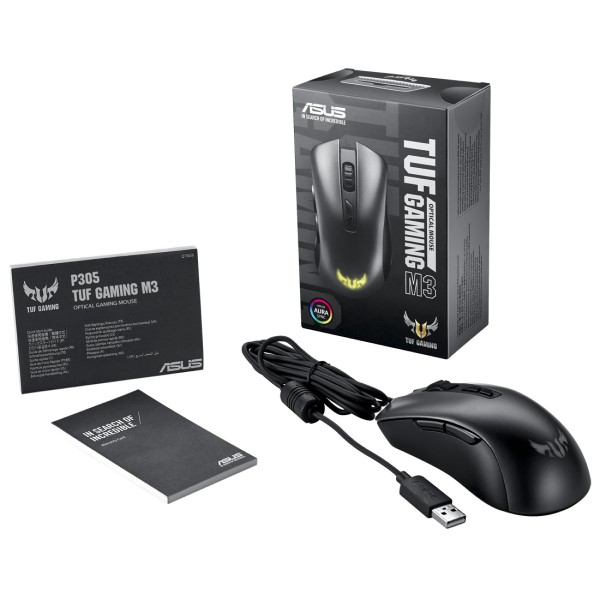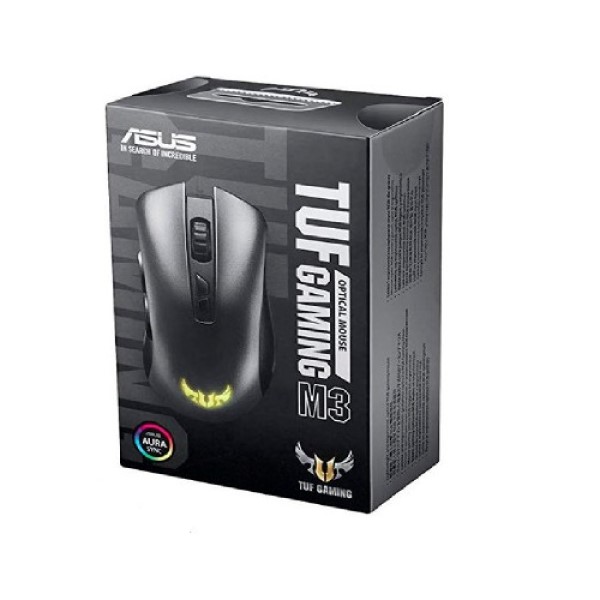 ماوس گیمینگ سیمی RGB ارگونومیک ASUS TUF Gaming M3 با سنسور 7000 dpi، ساختار سبک وزن، پوشش بادوام، سوئیچ های سنگین، هفت دکمه قابل برنامه ریزی و Aura Sync