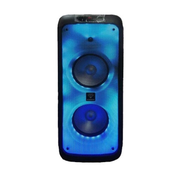 سپیکر بلوتوثی دیاموند مدل DX-BX2100 از نوع پارتی باکس و سفری تولید و در جشن و مهمانی ها و سفرهای شما کاربردی می باشد. اسپیکر DX-BX2100 ارتفاع 85 سانتی متر دارد و دارای پورتها و راههای ارتباطی USB T،F card reader ،Bluetooth 5 ،AUX است. باتری داخلی اسپیکر چمدانی دیاموند مدل DX-BX2100 قابل شارژ با توان 7.4 وات و 7200 میلی آمپر می باشد و شارژی پرتابل در این اسپیکر 4200 وات است. اسپیکر دیاموند مدل DX-BX2100 مجهز به ساب ووفر 10 اینچی، یک عدد میکروفون بی سیم، نمایشگر رقص نور با نورپردازی های جدید میباشد.