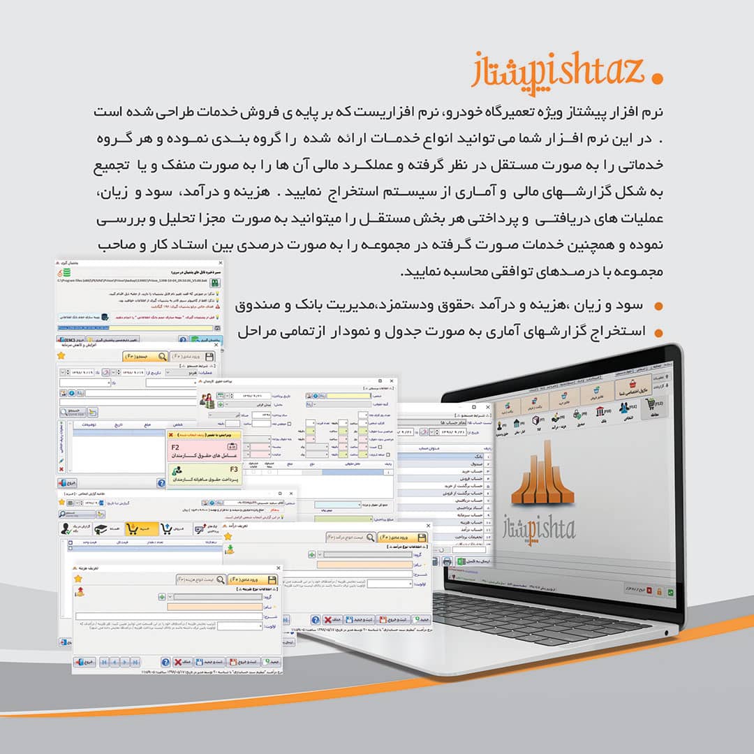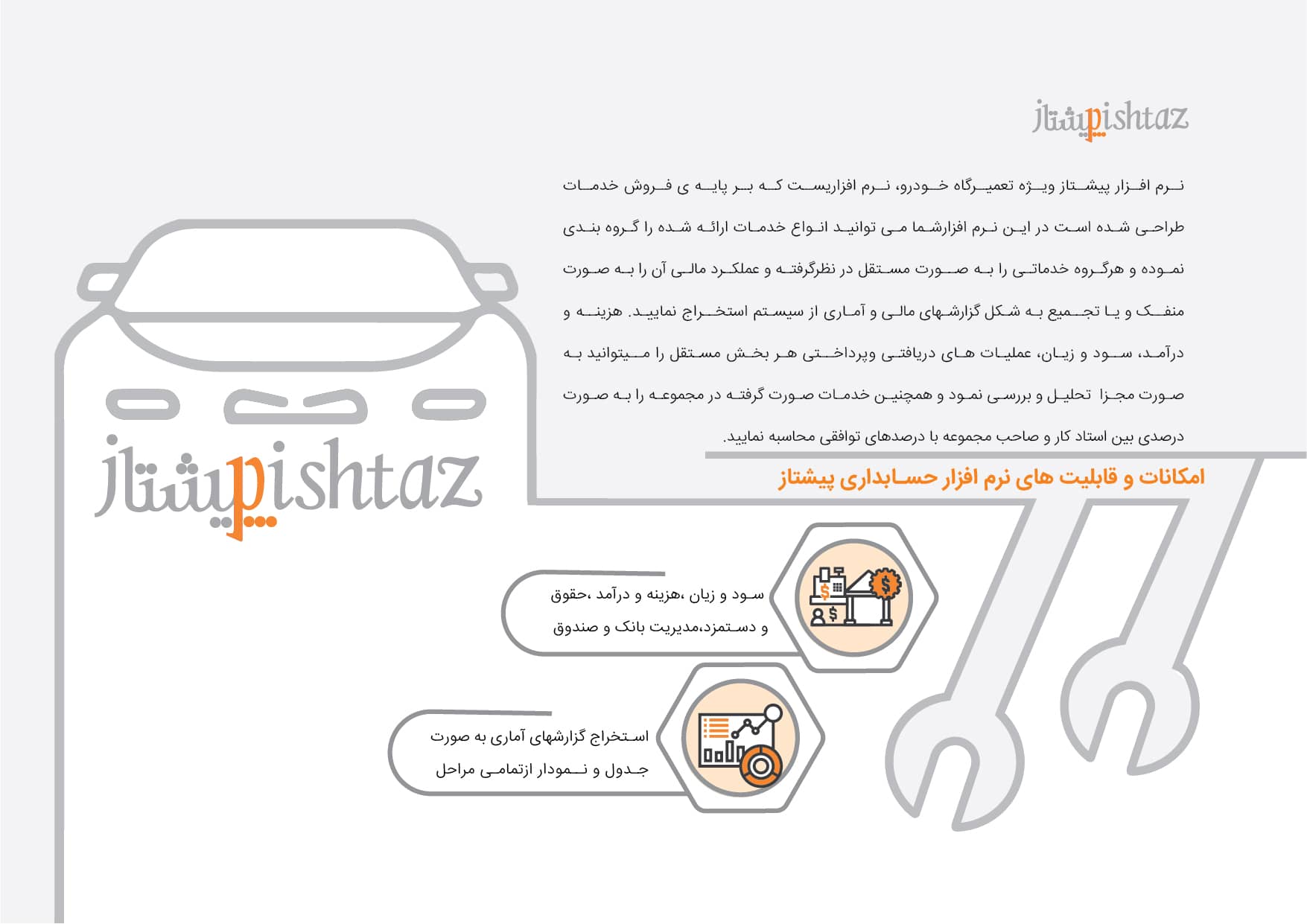 تعمیرگاه های خودرو و تمام شرکت های مجاز به ارائه خدمات فنی و تعمیراتی به ماشین ها ، می توانند برای مدیریت کسب و کار خود تخصصاً از نرم افزار پیشتاز استفاده کنند.