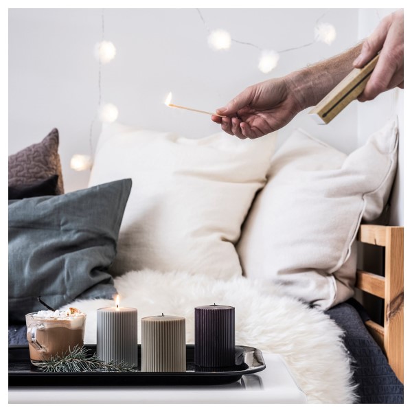شمع معطر ایکیا مدل GLASBJORK در سه رنگ گوناگون عرضه شده است.دارای ۳۰ ساعت دوام با عطر تند و گرم و رایحه چوب سدر و وانیل است که حس روزهای زمستانی را در فضا خانه ایجاد میکند.